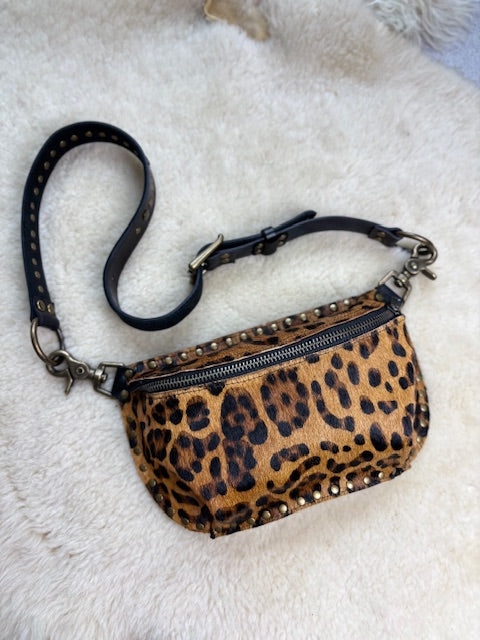 Black Leather Crossbody/Waist Bag with Snakeskin